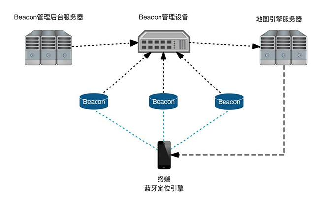 終端側定位系統(tǒng)由終端設備(如嵌入SDK軟件包的手機)和beacon組成。其具體定位原理是: